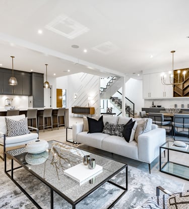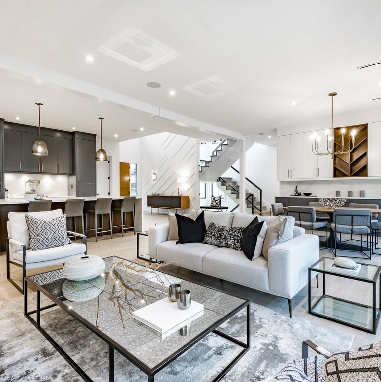 This project showcases a complete transformation into a bright, modern open-concept living space. The design seamlessly integrates the kitchen, dining, and living areas to create a functional yet stylish environment perfect for everyday living and entertaining.